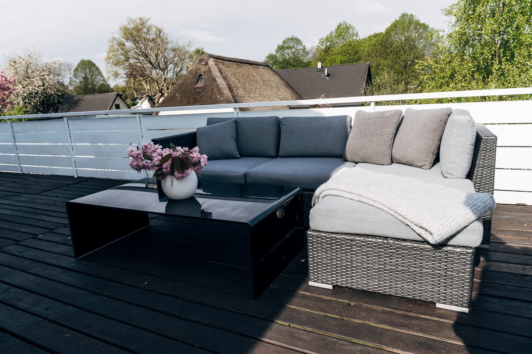 Die Terrasse mit den Loungemöbeln bietet sich gerade in den Sommermonaten,
