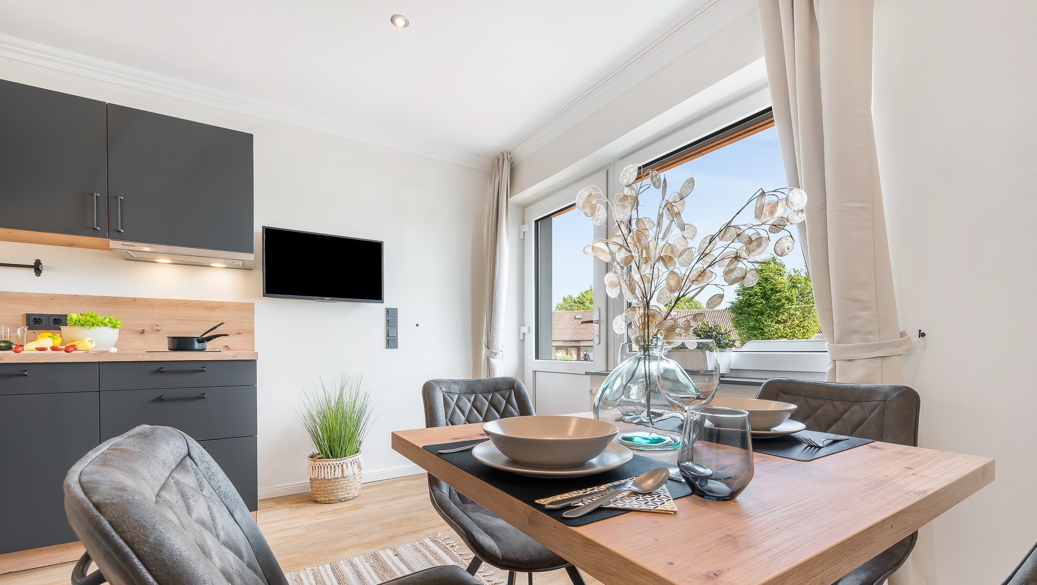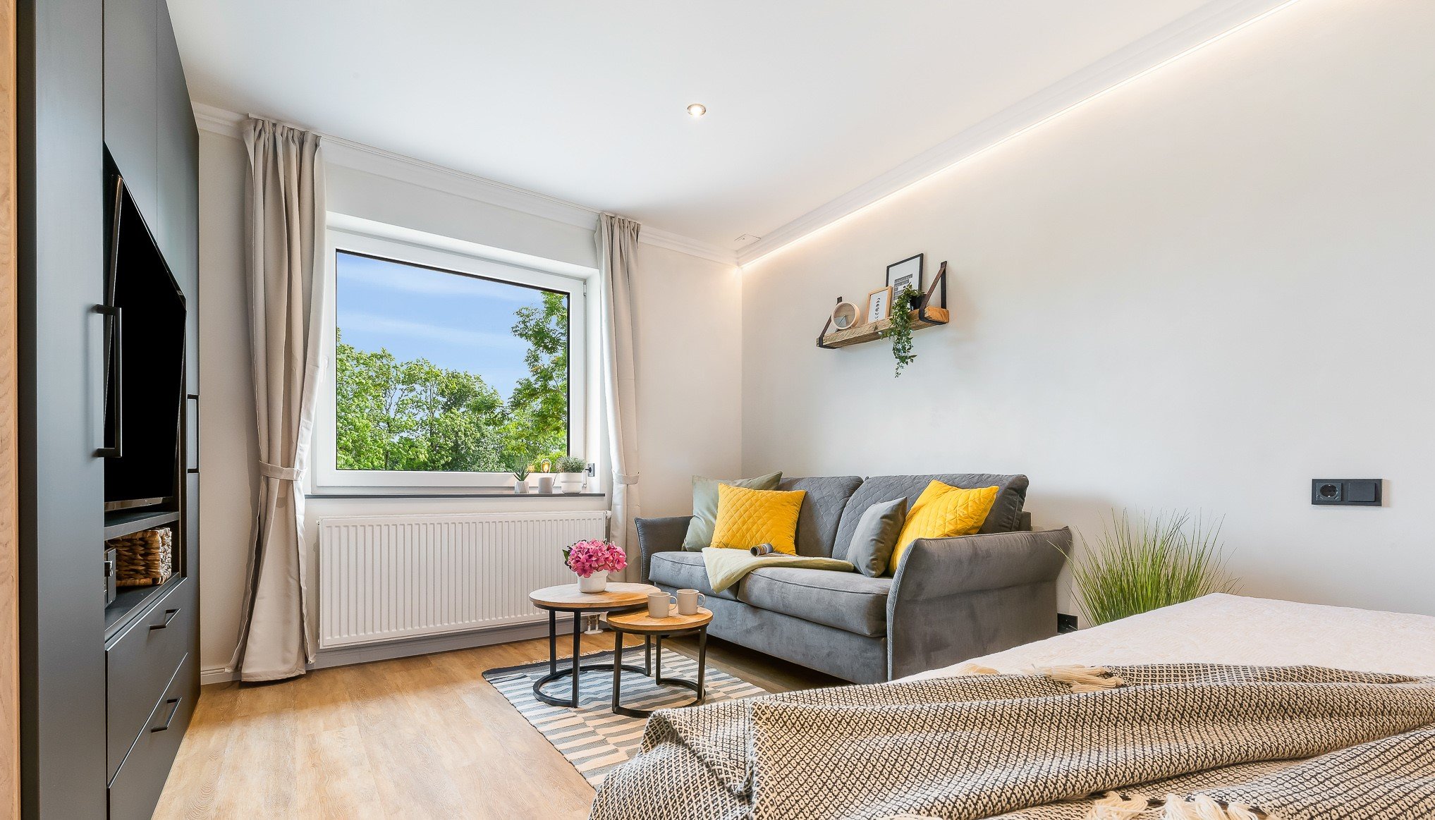 Das 1-Zimmer-Apartment ist mit einem Doppelbett und einer zusätzlichen Schlafcouch ausgestattet, so dass es für 2 Erwachsene und 2 Kinder super geeignet ist. Die Nutzung von WLAN ist kostenfrei möglich. Die moderne und voll ausgestattete Einbauküche ist ideal für Selbstversorger. Das Apartment verfügt über ein neues, ebenerdiges Duschbad mit WC.