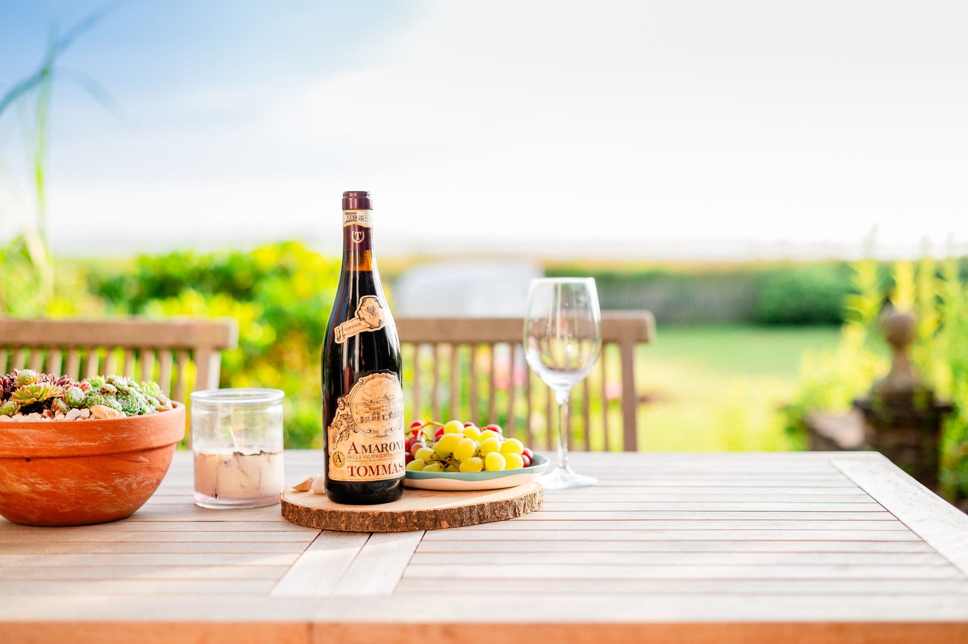 Auf der Rasenfläche ist ausreichend Platz zum spielen und toben für die Kinder, die Erwachsenen machen es sich nebenher im Strandkorb oder auf der Sonnenliege bequem.