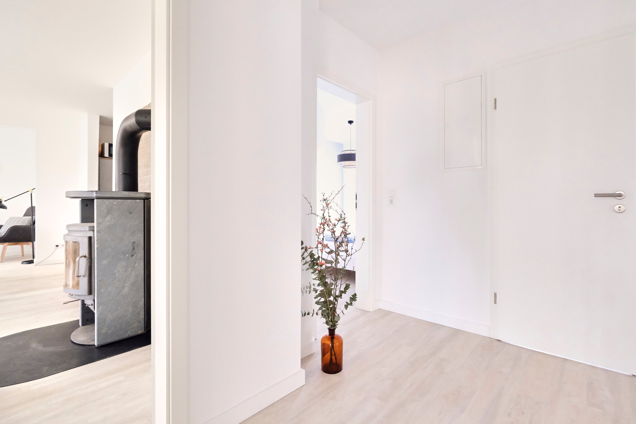Ankommen und genießen ... Die sehr geschmackvoll und liebevoll gestaltete Ferienwohnung eines ehemaligen Bauernhauses lädt zum Verweilen und Entspannen ein. Ob mit der ganzen Familien oder ein Trip mit Freunden - der große Wohn- und Essbereich ist das Herzstück der Wohnung. Hier kann gemeinsam gekocht, gegessen, gespielt und gelacht werden. Für eine zusätzlich gemütliche Atmosphäre sorgt ein Kaminofen in der Sofaecke.