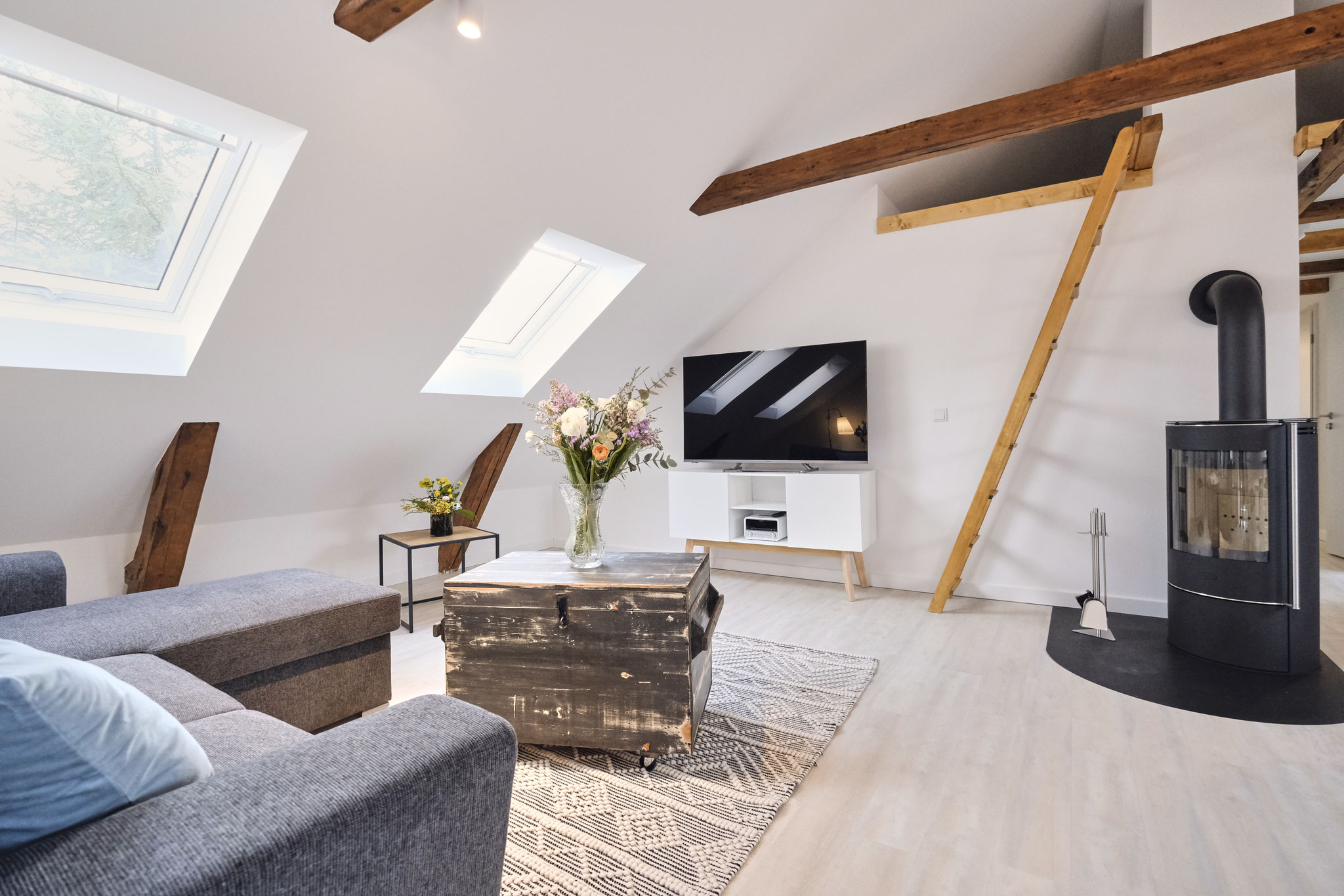 Die sehr geschmackvoll und liebevoll gestaltete Ferienwohnung eines ehemaligen Bauernhauses lädt zum Verweilen und Entspannen ein. Ob mit der ganzen Familie oder ein Trip mit Freunden - der große Wohn- und Essbereich ist das Herzstück der Wohnung. Hier kann gemeinsam gekocht, gegessen, gespielt und gelacht werden. Für eine zusätzlich gemütliche Atmosphäre sorgt ein Kaminofen in der Sofaecke.