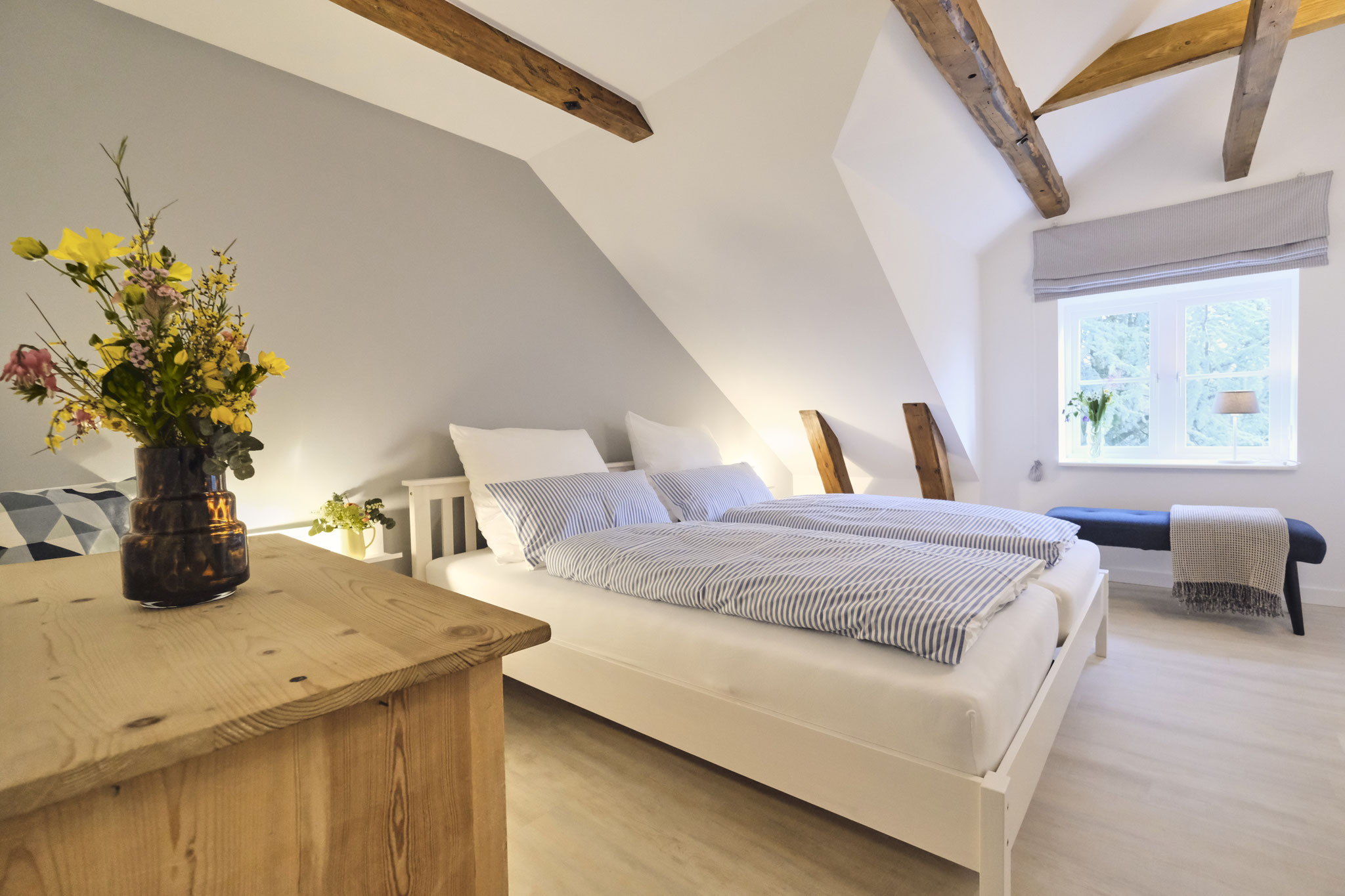 Die 3 -Zimmer-Wohnung ist mit einem Doppelbett, zwei Einzelbetten und einem Einzelbett im offenen Hems ausgestattet. Sie kann mit bis zu 5 Personen bewohnt werden, Nutzung von WLAN ist kostenfrei möglich. Die moderne und voll ausgestattete Einbauküche ist ideal für Selbstversorger. Die Wohnung verfügt über ein neues Duschbad mit WC.